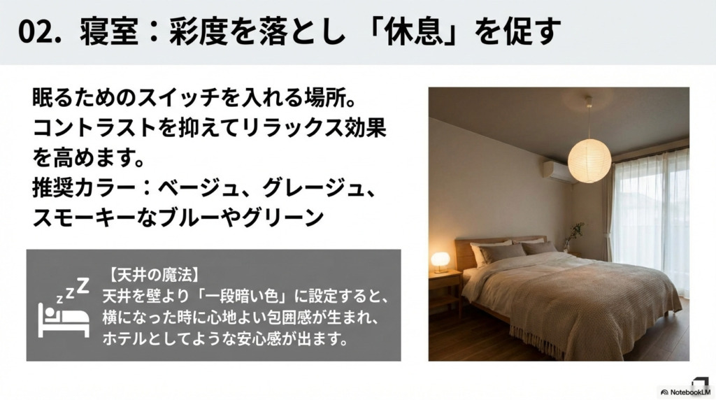 ・暗めの天井 → 落ち着き