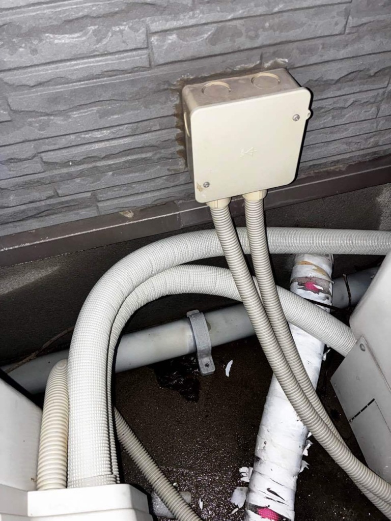 ↑施工後:アルミ三層管に入れ替え、しっかりとした管で繋ぎな直しました。