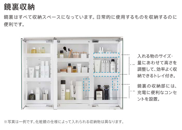 鏡の裏に収納できるため、