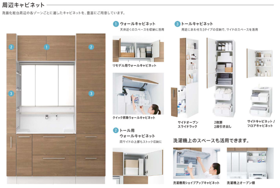 などを設置することで、洗面所全体の収納力をアップすることも可能です。